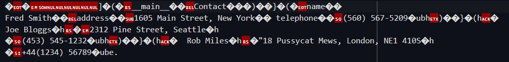 print("Telephone:", contact.telephone, "\n")The new display_contacts now looks like,