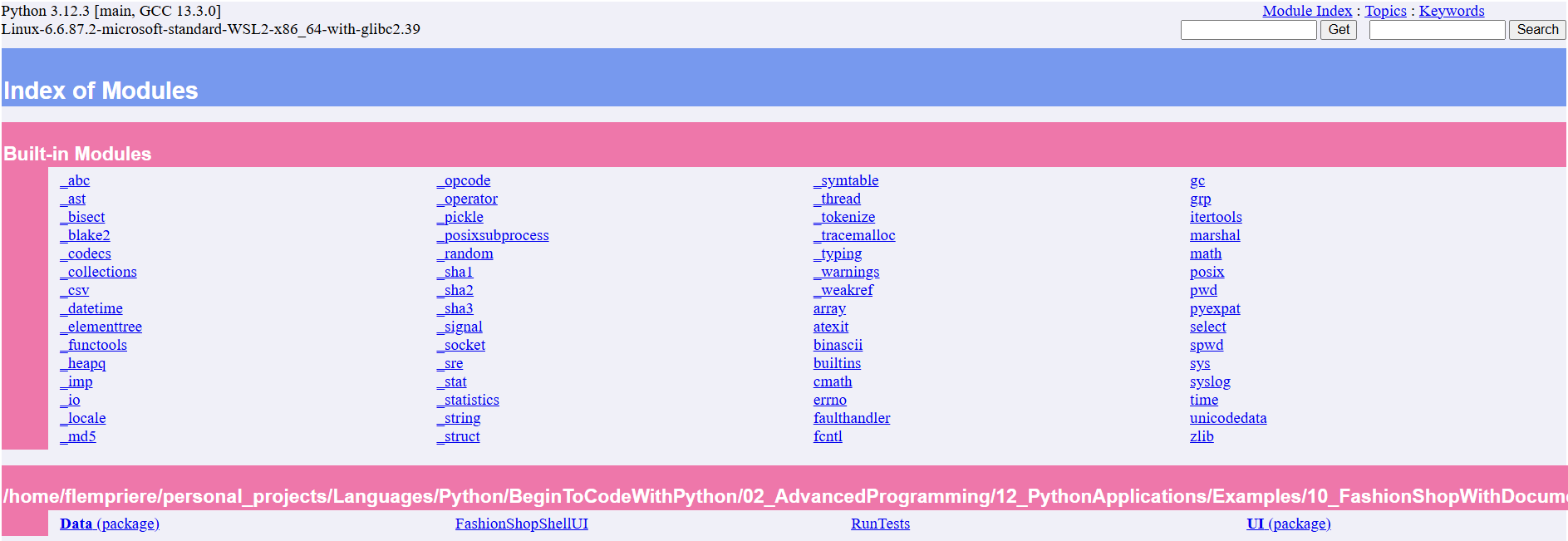 We can see the site contains links to python’s built-in modules
