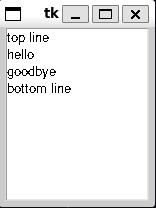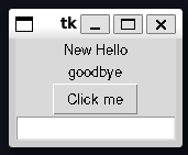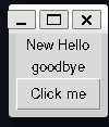 Goodbyeby executing the followinggoodbye = Label(root, text="goodbye") goodbye.grid(row=1, column=0)- Display now has two labels